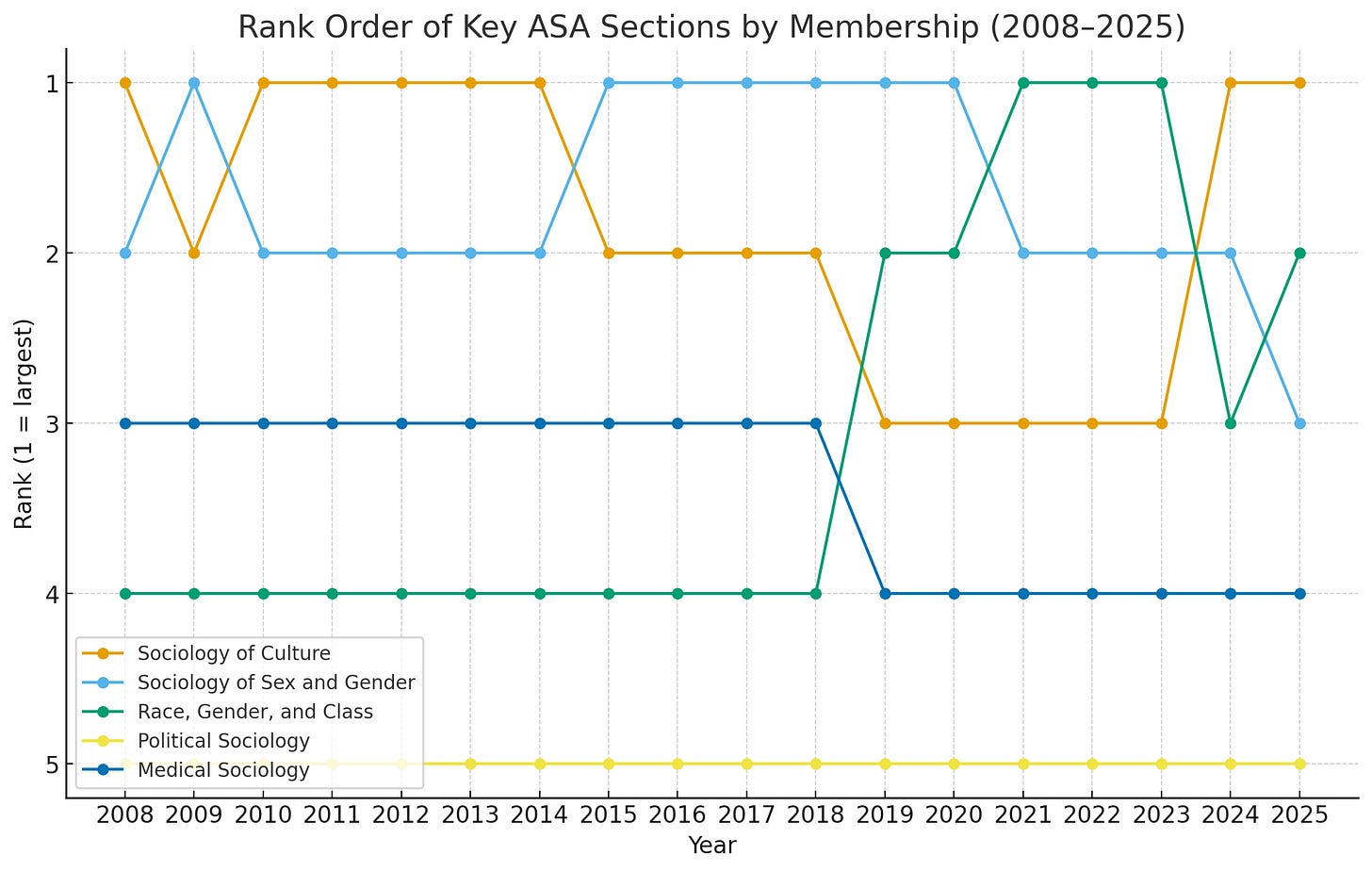There were many jobs in the newly created area (every department now needed a sociologist of culture), and high levels of student interest. It remains one of the largest sections in the American Sociological Association. However, new jobs are now scarce, in part for macro-disciplinary reasons, but also because the field, coming into existence almost all at once, is defined by a strong cohort effect, with its early incumbents holding onto their positions throughout their careers, and are only now nearing retirement. It will be very interesting to see if the sub-field can reproduce itself, and what it looks like as the initial cohort gives way to the next.