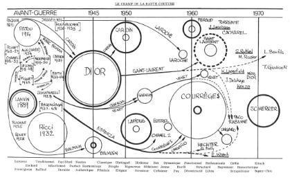 The contrast to his earlier diagrams is striking (the image at the top of this post is an example). The result was that the concept of field itself became more spatialized and synchronic. Society appeared less as a set of trajectories and fine distinctions, and more as a global arrangement of positions on a two-dimensional plane.